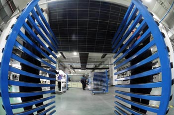 河北省保定英利集团抓住金融危机造成国际市场硅料价格大幅下降、光伏发电成本降低的机遇,利用自身品牌、质量、技术、管理优势,大力开拓国内外市场,2009年已接订单达400兆瓦,预计全年销量将比去年翻一番。新华社记者 王民 摄