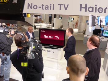 在美国CES展上,海尔“无尾电视”吸引了众多参观者驻足猎奇。 |