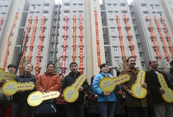 武汉市最大的保障性住房项目百步亭社区悦秀苑、景兰苑交房工作日前正式启动。该项目包括5263套经济适用房和194套廉租房。新华社发 |