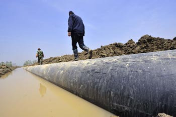 西气东输二线东段倒水河定向钻穿越工程近日完工,这段工程位于湖北省武汉市新洲区境内。新华社记者 程敏