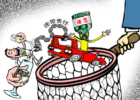 为进一步加大酒后驾驶打击力度,南京市从8月15日起组织开展为期两个月的酒后驾驶违法行为集中整治行动。同时,相关部门将联合出台长效机制严禁酒后驾车,其中同桌劝驾驶人饮酒或同车明知驾驶人酒后驾车不及时主动劝阻制止的,将通报相关单位和主管部门予以内部处理,情节严重的要媒体公开曝光并追究连带责任。(据《长江商报》)张兮兮 绘