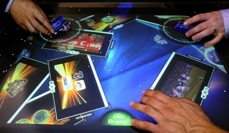 层出不穷的科技产品瓜分着市场和金钱,也影响着国家的支配力,技术和商业秘密的竞争势必是激烈无情的。图为在美国拉斯韦加斯举办的2009年国际消费电子展上的NBC电视台与微软公司共同推出的桌面屏幕。新华社记者张岩摄 |