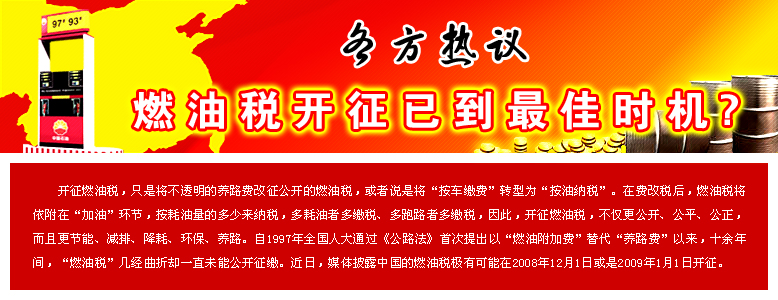 | 众所周知,成品油价格和燃油税作为改革的深水区,完善成品油价格形成机制,加快燃油税改革方案的出台,无论对打破垄断,使改革在关键领域取得突破,还是扩大内需,促进结构调整,公平和规范税负,鼓励节约能源和保护环境,确实极具意义。但是,成品油价格和燃油税改革又是一个利益博弈非常激烈,牵一发动全身的改革举措,不仅涉及石油企业、交通部门,更牵扯到每一个老百姓的基本生活。[详情] | |