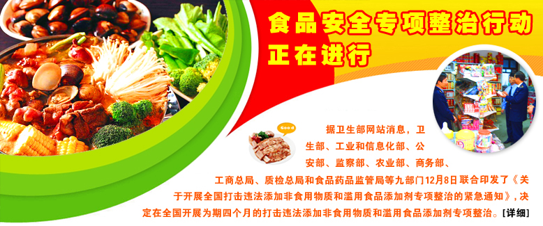 | 认真贯彻落实国务院关于系统而有序地解决食品安全问题、立即动手解决滥用添加剂等紧迫问题的指示精神,全面部署在全国范围内立即开展打击违法添加非食用物质和滥用食品添加剂的专项整治行动。 | |