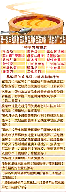 | 非食用物质及易滥用食品添加剂"黑名单"公布 |