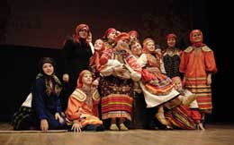 中俄家庭联欢演出2日在莫斯科维什涅夫斯卡娅歌剧中心举行,该演出是第四届中俄妇女文化周的一项重要内容,来自中俄两国的10多个家庭表演各具特色的节目。来自梁赞地区斯科宾市的“极限”家庭组合,表演了短剧《俄罗斯红色角落》片段,充分展示了民族服装特色。