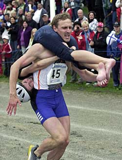 新华社/路透 | 地广人稀的芬兰夏季短促。为使人们聚集在一起度过快乐时光,从1992年起,芬兰小镇松卡耶尔维开始举办“背老婆”比赛。今年的比赛于本月7日举行,爱沙尼亚选手夺得冠军。 今年是第12届“背老婆”比赛,共有来自12个国家的44对夫妇报名参赛。在往届比赛中,爱沙尼亚选手一向优势明显,今年他们再次包揽了比赛的前两名,马迪斯·乌索格与妻子因加·克劳松以61.7秒的成绩最先跑到终点,他们的奖品是一台等离子电视机,以及与冠军妻子体重相等的49公斤啤酒。 顾名思义,“背老婆”比赛的方法即是丈夫背着老婆或女伴赛跑,赛程共250米,选手在奔跑中要跨越一个水池和一些围栏障碍物。最令人大开眼界的是,虽然背“老婆”的方式没有固定要求,但是很多人采用了一种奇怪的标志性“爱沙尼亚式背法”,即女伴一路头朝下用双腿挂住男选手的脖子。这种背法虽然不够雅观,但效果甚佳。 今年的冠军丈夫马迪斯·乌索格是上届比赛冠军马戈·乌索格的兄弟,马迪斯赛后对路透社记者说:“赢得比赛我非常兴奋,这是我第五次参赛,第二次夺冠,而且是第一次战胜我的兄弟。” “这个比赛听起来很荒唐,”来自美国俄亥俄州的苏珊·拉佛蒂和丈夫一起参加了今年的比赛,并获得第33名。“但是它的出现有很多历史渊源呢。” 活动主办方主席韦科·泰尔沃宁介绍说,“背老婆”的传统可以追溯到200多年前,当时,有一个名叫罗斯沃-龙凯宁的强盗头目,为挑选最强壮的手下,他让申请者背着重物穿越森林,速度最快的人才有资格入选。 “传说这些强盗在洗劫村落时还会掳走妇女,”泰尔沃宁接着打趣说,“还听说女人们很乐意被抢走。” 十几年前,一些芬兰人希望通过纪念这些古老的传说保留本国传统文化,于是从1992年开始,“背老婆”比赛重现江湖。 为推广此项赛事,芬兰主办方还专门设立网站,辅导人们如何提高“背老婆”技能。比赛很快传播开来,并获得世界上其他地区人们的喜爱。 依据比赛规则,“老婆”除了真正的妻子,也可以是做搭档的其他女伴,但不管是谁,她们的体重必须在48.5公斤以上,否则女选手还需另背一个沙包补齐重量。如果在奔跑过程中女伴摔到地上,那么这组选手的成绩将被加上15秒。然而,比赛规则中最重要的,也是惟一标成粗体的一条是“所有参赛者要玩得开心”。 美国参赛者苏珊和丈夫詹姆斯说:“我们来这里的目的就是为了开心,现在不仅我们非常快乐,我们的孩子和在场的所有人都非常高兴。” 据统计,每年有一万多游客因“背老婆”比赛来到松卡耶尔维小镇,远远超过小镇人口。 “你可以在这里感受到世界上最美好的时光,”泰尔沃宁说,“当全世界被暴力新闻充斥的时候,我们希望在这里营造一个欢乐之都。” |