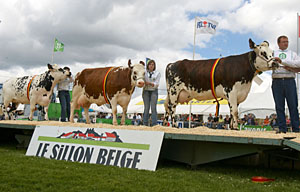 | 7月底在比利时南部小城利布拉蒙举行的第73届欧洲农业博览会上,参会者向观众展示奶牛。本报记者 徐金泉
