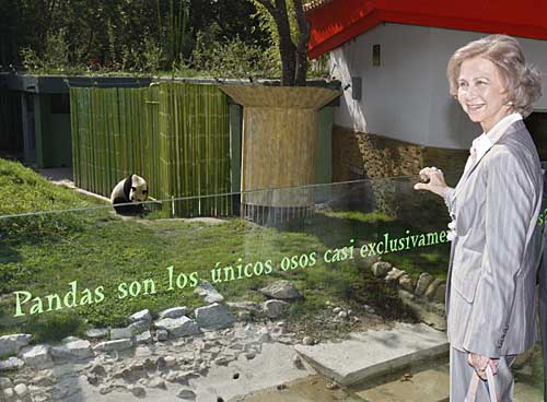 19日,西班牙王后索菲娅在首都马德里的动物园观赏中国大熊猫。今年6月西班牙国王卡洛斯一世访华时,两国政府确定中国与西班牙大熊猫保护研究国际合作项目启动。本月8日,雄性大熊猫“冰星”和雌性大熊猫“花嘴巴”抵达马德里,开始在马德里动物园为期10年的旅居生活。