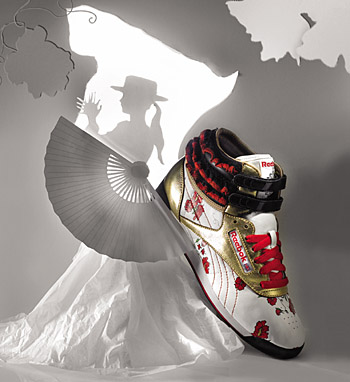 著名体育品牌锐步日前推出了Freestyle经典女鞋08“时尚都市”系列中的Freestyle马德里女鞋。 该款鞋以白色鞋体搭配红色花朵,亮丽的金色装饰点缀其间,其最为独特的设计当属黑红设计的蕾丝装饰,灵感源于弗拉明戈女郎宽大的裙摆,层层叠叠,摇曳生姿。 Freestyle经典女鞋08