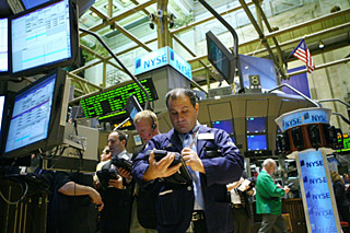 | 图为交易员在美国纽约证券交易所忙碌。新华社记者 侯俊
