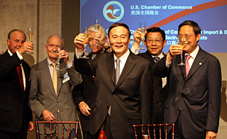| 16日,前来美国出席第四次中美战略经济对话的胡锦涛主席特别代表、国务院副总理王岐山在华盛顿出席中美经贸合作签约仪式。新华社记者