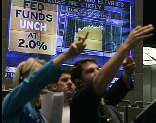 | 5日,交易员在美国芝加哥期货交易所工作。当日,美国联邦储备委员会宣布,将联邦基金利率维持在2%不变。新华社/路透 | 本月5日,美国联邦储备委员会决定,将联邦基金利率(即商业银行间隔夜拆借利率)保持在2%的水平不变。这是继6月25日宣布维持利率不变后,美联储再次作出这一决定。而此前,美联储曾连续7次下调利率,降息幅度共计3.25个百分点。 如果说美联储6月份维持利率不变主要是“双重夹击”的无奈之举,那8月5日的这次决定则是“多重威胁”下的被迫之举。一些经济学家认为,在当前复杂的经济环境下,美联储的利率调整空间相当有限。
