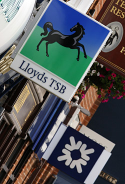 位于英国英格兰中部的一家莱斯银行办事处门前悬挂的标志。新华社/路透 |