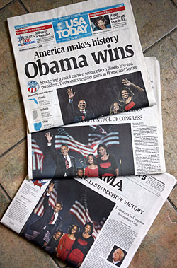 | 图为《今日美国报》、《华盛顿邮报》和《纽约时报》的头版版面。新华社记者