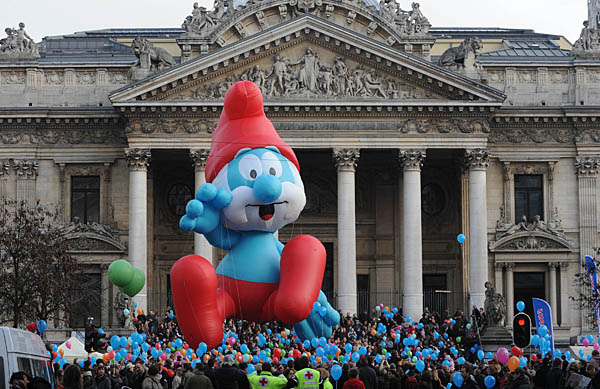 2月28日,蓝精灵形象的气球行进在比利时布鲁塞尔的气球大游行队伍中。当天,布鲁塞尔首次举行气球大游行,气球形状以各种著名的动漫人物为主。游行同时拉开了2009布鲁塞尔动漫年的序幕。