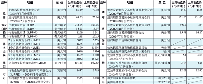 国际大宗商品期货价格明细表