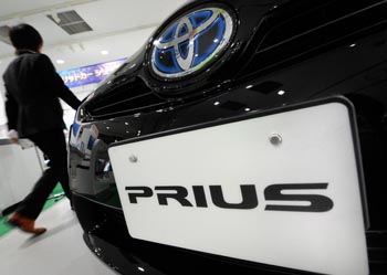 在日本首都东京,一名男子从一辆丰田普锐斯混合动力车旁走过。新华社/法新 |