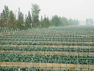 上个世纪90年代,江都市小纪镇曾经发生过大量种植毛豆却难以销售,最后只得动员江都市民吃毛豆的事。曾经的挫折并没有挫伤当地农民产业结构调整的积极性,在超大、绿源等龙头产业的带动下,江都市的蔬菜种植规模迅速扩大,截至2006年年底,全市蔬菜种植面积达13万亩。 地处江都东北部的武坚镇有种植蔬菜的传统,也陆续引进了西瓜、丝瓜、蚕豆等经济作物,但因为缺乏开拓国内外市场的企业,造成农民与市场脱节,技术服务、品种改良又跟不上,遭受了一些挫折。2004年,超大集团被引进到江都,带来了当地农民平时听都没听说过的新品种,破季蔬菜、有机食品等概念强烈冲击着农民的思维。超大集团同时还带来了市场,产品主要以出口为主,兼顾国内各大超市。 龙头企业不仅拉动了产业,还培训了大量技术农民。武坚镇的50多位农民目前开始从超大等龙头企业出来“自立门户”,成为远近闻名的蔬菜大户。武坚镇党委书记钱正明介绍,承包超大集团大棚的农民,人均年纯收入都在8000元到一万元左右,即使“自立门户”的农民,大棚每亩收入也在5000元以上。 为了加快当地蔬菜产业的发展,江都市去年专门明确了扶持政策:每发展连片100亩以上的蔬菜基地,每亩补助50元;每发展50亩以上的标准化钢架大棚或宽体大棚,每亩补助100元。另外,江都还对基础设施配套与新品种、新技术推广、技术培训、蔬菜加工销售企业的兴办给予适当扶持,吸引了大量工商资本与民间资本投入蔬菜产业。仅2006年,江都市就引进三资1.2亿元发展设施蔬菜,一年新增蔬菜种植面积3.8万亩。