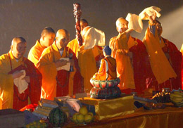 5月23日,众多高僧在为《禅宗少林·音乐大典》祈福。