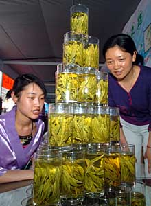 黄山茶商京城“叫卖”。本报记者 张旭 摄 |