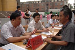 郑州市劳动和社会保障局局长王保明现场解答就业政策。 本报记者:闻有成