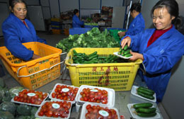食品安全从源头抓起。11月6日,南昌县鑫和源绿色农业开发有限公司员工正在包装净菜。新华社记者:宋振平