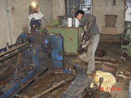 在长兴开展的污染行业整治中,工人正在拆除污染严重的喷水纳机。常宣