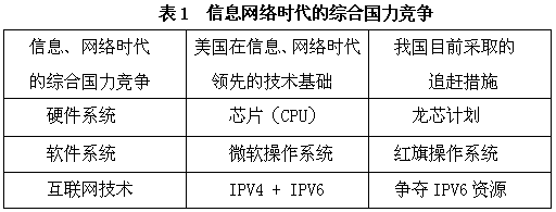 在信息化,网络化的时代,信息、网络方面的软硬件建设和竞争,已经成为各个国家综合国力建设和竞争的核心部分,成为各国争夺的焦点,信息战、网络战成为现代战争的新领域、新利器,信息、网络安全成为国家安全的要害。美国目前在这方面处于领先和霸主的地位,形成了巩固和强化其世界霸权地位的有力支撑。我国虽然也在各个方面努力追赶,但过去已有的成果还不足以动摇和挑战美国在信息和网络方面的领先地位。