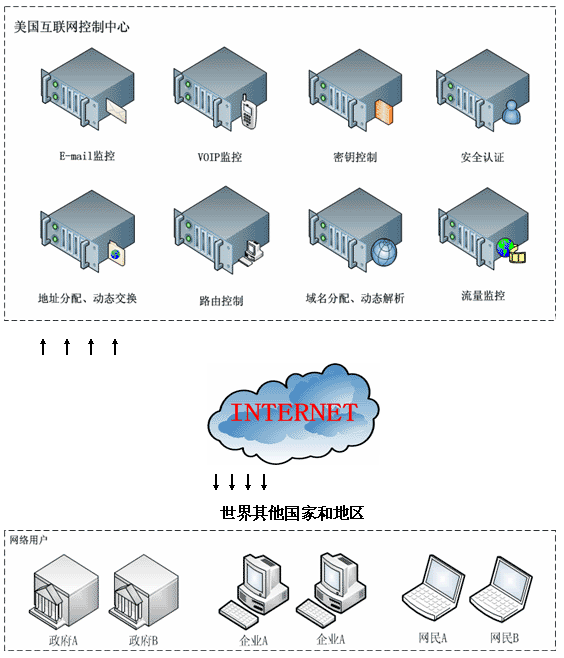 1、美国是现有互联网游戏规则的制定者,是互联网核心硬件设施的最终控制者。