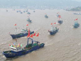 浙江省象山县是海洋渔业大县,海洋捕捞能力居全国第一。图为东海伏季休渔期结束后,渔船竞发驶向东海。 | 浙江省象山县是海洋渔业大县,拥有2100多艘大马力钢质渔轮,总吨位超过70万吨,海洋捕捞能力居全国第一。近年来,象山在积极推进渔业转产、渔民转业中,跳出传统思路,变着法子吃海,将有限的海洋资源发挥出最大的效益。 象山县委书记周江勇说,近年来,由于海洋资源衰减,劳务、油料、机辅料等生产成本剧增,传统渔业受到严重制约,现实逼迫我们要加快渔区产业结构调整。但如何发挥利用有限的海洋资源,一条鱼吃出2条鱼、10条鱼甚至100条鱼的价值来,这就需要转变传统的发展模式,探寻一条低投入、高产出、可持续发展的新路径。