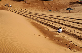 也许,看惯了青山绿水的人们,越来越多的将目光投向雄浑大漠,去寻求前所未有的新奇感觉和刺激。然而,仅凭新奇好看就能持久打动游人?“不断创新才是沙漠旅游日益迷人的不竭源泉。”沙坡头旅游公司总经理王福中如是说。 2004年首届中国宁夏国际沙漠旅游文化节上,“菜单”丰盛而有新意,包括“沙漠探险”、“沙漠旅游”、“大漠沙雕艺术展”、“热情的沙漠——文艺演出”、“沙漠·人体艺术彩绘车展”和“沙湖旅游商品展示会”以及“徒步穿行沙漠大赛”、“沙漠文化节新闻摄影大赛”、“沙漠豪情啤酒畅饮大赛”、“走近大自然——儿童绘画大赛”等赛事。 这仅是宁夏沙漠旅游中的一朵“浪花”。近些年来,以沙漠旅游为蓝本的节日每年都有,沙湖龙舟赛、沙滩排球巡回赛、万人徒步穿越腾格里沙漠、千人漂流黄河等活动,充分展示出宁夏集大漠、黄河、高山、绿洲为一体的奇妙之旅。 特别值得一提的是“沙漠冲浪”项目。坐上装饰华丽的卡车,在沙丘四布、高低落差几十米的沙海中行进,游人既能体会类似过山车的刺激,又有船行大海的错觉,还可能在剧烈的颠簸之后血脉贲张。 积沙成塔、集腋成裘。如今,宁夏沙漠旅游项目已达数十种之多。 2007年,一场规模浩大而又别开生面的沙漠运动会在沙坡头隆重开幕。宁夏为了充分挖掘沙漠的健身娱乐功能,出版发行了《中国宁夏·沙漠体育运动手册》,对10项竞技类、12项娱乐类沙漠体育运动及14项沙漠体育游戏规则作出规范。沙漠高尔夫、沙漠软式排球、拉沙驼等既新鲜刺激、有趣味性,又容易参与的新项目闪亮登场。 想当年,沙湖以沙滩为码头,一天接待200人。现如今,沙湖正在修建日接待能力8万人至10万人的码头。沙湖码头的变迁昭示着不断升温的沙漠旅游,而沙坡头多年难解的停车难题也预示着宁夏沙漠旅游“高兴的烦恼”。 “大漠孤烟直,长河落日圆。”王维的不朽诗句和他本人的雕像矗立在沙坡头景区门口,千年前的个人体验正在转化为芸芸众生的集体欣赏,倘若王维有灵,不知今日赋诗何句?