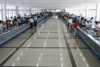 广东省东莞市华坚集团华宝鞋业有限公司厂房一角。 | 今年7月19日,中共中央政治局常委、国务院总理温家宝在广东省东莞市华坚集团华宝鞋业有限公司视察调研时,对该企业给予了这样的充分肯定——发展、转型、升级“这是‘六字真言’,发展是硬道理,升级是核心,转型是调整结构。六个字反映了企业所走过的道路,是从实践中总结出来的经验。把压力变成动力,把困难变成机遇,就要靠这六个字。”
