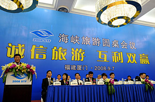 | 9月7日,海峡两岸旅游界人士在第四届海峡旅游圆桌会议上。新华社记者