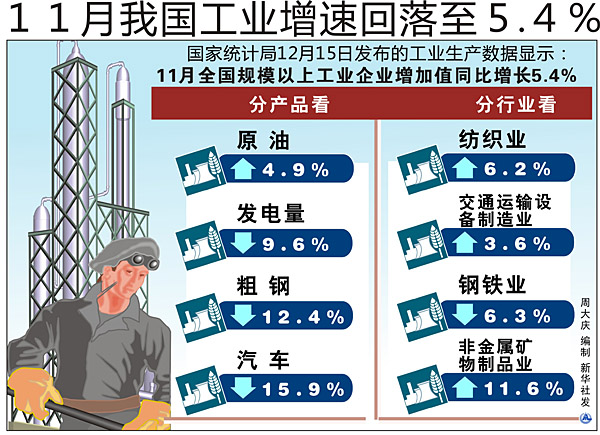 11月我国工业增速回落至5.4%