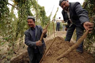 策勒县经济落后,财政严重不足,大规模开展防沙治沙工程后很快就陷入资金严重短缺的矛盾之中。策勒县县委书记吴红展说,严酷的自然环境和现实逼得我们要向沙漠要效益、发展沙产业,以防沙治沙促进经济发展,将所获资金再投入到防沙治沙中,做到扩大生态治理和经济发展的良性循环。 风沙肆虐的策勒县拥有其他地区不具备的生物资源,那就是丰富的沙生植物,如大芸、甘草、锁阳、麻黄等天然沙生药材。寄生于红柳的大芸让策勒人看到了生态与经济发展双赢的可能。自2004年开始,策勒县开始推广人工种植红柳大芸,并在重点生态区建立了集实验、示范、科普于一体的综合管理示范基地,开展红柳大芸种植、接种、采集管理等技术示范推广。截至目前,全县人工种植红柳大芸面积达20850亩,接种大芸16893亩,已有16000万亩初见效益,稳产区大芸平均亩产已在120公斤以上,今年产值近1600万元。 在策勒县3号风口的红柳林中,记者见到了正刨开沙土挖大芸的农民买买提斯迪克·吐尔逊,“大芸神奇得很,可以治好多病,你们买点吧。”挖出大芸后,买买提斯迪克的第一句话就是推销他的“产品”。沙产业的优势才刚刚显现,新疆沙漠边缘的农民已有了强烈的市场意识。 策勒治沙站的研究生刘波说,随着沙区植被覆盖度的提高,策勒县域内的生态环境和小气候已有了明显改善,并形成了对沙区农牧业生产强有力的生态保障。而人工红柳大芸基地的建设,更是带动了策勒县沙产业的发展。在看到接种大芸带来的经济效益后,当地农牧民种植、保护红柳的积极性大大提高。 如今,吴红展的愿望是延长沙产业链,真正实现沙产业的有序利用和合理开发,促进当地经济发展、增加农牧民经济收入。“也许策勒受风沙危害的现实不会改变,但‘风吹城跑’的历史将不会重演,在劣势中求变、求发展、求富的决心会让策勒的明天值得期待。”吴红展说。 |