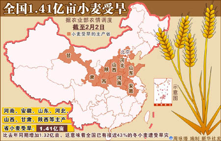 春节过后,小麦即将进入返青期。为了打赢抗旱保苗夺丰收这场硬仗,河南提出要集中全力,在未来10天时间,把全省7000多万亩小麦再普遍浇灌一遍。 根据最新统计,河南受旱面积已达到4519万亩,有50万亩麦田不同程度地出现麦苗枯死现象。从2008年10月24日到2009年2月1日,全省平均降水量仅为10.7毫米,较常年同期减少近八成。为应对持续发展的严重旱情,河南省防汛抗旱指挥部2月1日宣布,将原来的Ⅲ级抗旱应急响应升为Ⅱ级。当前,麦田旱情持续发展,受旱面积之大,时间之长,程度之重,都为新中国成立以来所少有。 2日下午,河南再次召开抗旱浇麦夺丰收电视电话会,对下一阶段的抗旱浇麦工作作出部署:要争取用10天时间,把全省7000多万亩小麦普遍浇灌一遍,坚决打赢抗旱浇麦夺丰收的攻坚战。会议要求各级各部门要立即行动起来,有浇水条件的要加快进度,做到早浇快浇;要搞好调查研究,澄清自流灌区、井灌区和水源条件缺乏的冈丘地区等不同地域的可灌面积、已灌面积,做到心中有数。对有水源但水利条件差的地方,要通过车拉人担等方式,争取多浇一亩麦,多保一亩苗。同时,对于国家和省级拨付的5亿多元抗旱资金要用好,确保及时到位,而且要从本级财政中争取多拿出一些资金,支持抗旱浇麦夺丰收工作,确保抗旱浇麦保丰收的资金需要。必要时,动员组织机关、工矿企业、抗旱服务队、部队为缺水群众送水,确保旱区群众基本生活用水需要。