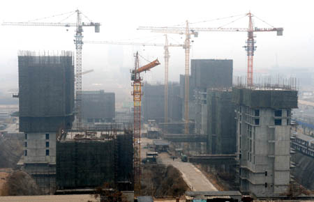 河北2008年商品房投资与销售量“一增一减”。图为石家庄市槐安路与谈固南大街交叉口处在建的楼群(2月18日摄)。新华社记者