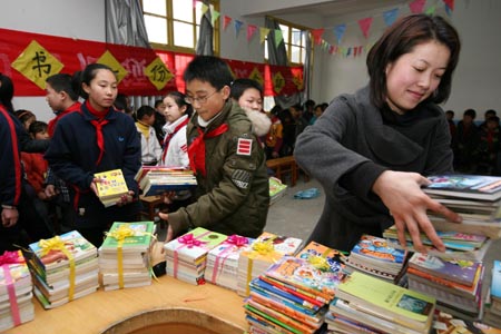 援建农民工子弟学校图书室。3月5日,浙江省舟山市南海实验学校的同学将图书送到定海区长峙阳光学校。