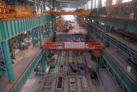 曹妃甸首钢京唐钢铁厂车间。新华社记者:杨世尧