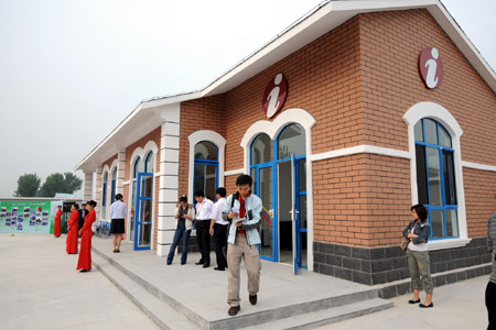 这是4月29日拍摄的北京市大兴区榆垡镇京开高速路出口处的旅游咨询站。当日,北京市在游客出入最集中、最需要的高速公路出口处和部分国道交通节点上建设的10个旅游咨询站建成启用。这些咨询站在建设选址、形象设计、功能设置、服务延展等方面都有统一规范的标准,除提供旅游咨询服务外,还设置游客休息、旅游代理、农副产品展示、投诉受理等综合服务项目。新华社记者:张旭