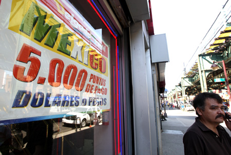 4月28日,在美国纽约,一名男子在一家旅行社窗户上张贴的“赴墨西哥旅游”的宣传海报旁驻足。美国疾病控制和预防中心代理主任理查德·贝塞尔28日说,美国确诊的猪流感患者人数已上升至64人。美国政府正在考虑是否发布对墨西哥的旅游禁令。贝塞尔建议美国民众如无必要尽量不要前往墨西哥一些疫情严重地区。新华社记者:刘欣