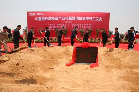 5月29日,位于江苏泰州的中国医药城疫苗产业化基地项目奠基。当日,国家级医药高新技术产业园区——中国医药城在江苏泰州举行揭牌仪式。中国医药城总体规划面积25平方公里,由科研开发区、生产制造区、会展交易区、康健医疗区、综合配套区五大功能区组成。它的目标是形成在疫苗、生物制药、化学药新型制剂、高端医疗器械、中成药提取等5个方面具有国际竞争力的特色产业基地。目前,区内已聚集了国内外知名的医药研发机构40多家,落户医药生产、服务型企业100多家。