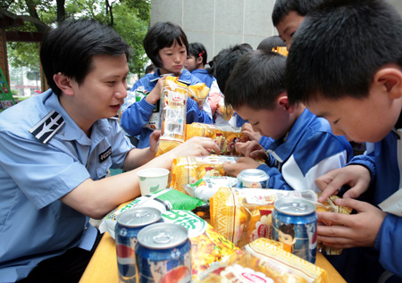 6月1日,湖北省枝江市质量技术监督局的工作人员带着节日礼品,来到该市特殊教育学校,宣传《食品安全法》。