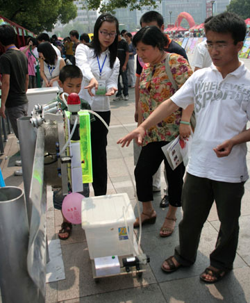 浙江民间资本实力雄厚,创业氛围浓郁,有望成为天使投资的一片热土。 图为不久前举行的2009年浙江省暨杭州市科技(科普)活动周上,浙江大学学生向参观者介绍由他们发明的“高速公路护栏清洗装置”。 新华社发(周学军摄)
