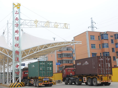 6月17日,在位于山西省临汾市的山西方略保税物流中心,载有进出口货物的车辆正在通关。6月16日,山西方略保税物流中心通过国务院联合验收组验收。这是山西省首家保税物流中心,也是经国务院授权由海关总署、财政部、国家税务总局、国家外汇管理局等四部委联合批准的首批17家B型保税物流中心之一。新华社发