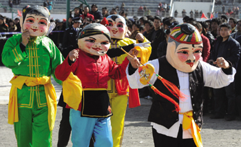 庆阳市环县民间艺人在“闹元宵”。本报记者 韩传号