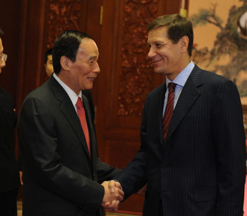 10月12日,中国国务院副总理、中俄总理定期会晤委员会中方主席王岐山在北京人民大会堂同俄罗斯副总理、中俄总理定期会晤委员会俄方主席茹科夫共同主持中俄总理定期会晤委员会第十三次会议。新华社记者