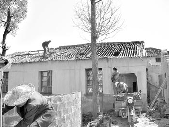眼下,浙江农村正掀起一股农房改建高潮。浙江省计划从2009开始,利用四年时间改造农房11万户,受到老百姓的欢迎。图为浙江省丽水市莲都区前林村村民在拆除旧房。张赛佳