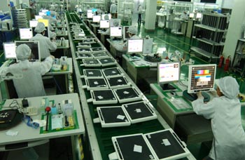 2009年我国内地宣布投建的7.5代以上液晶面板生产线已多达8条,预计总投资额将超过2000亿元人民币。两到三年后液晶面板市场或将面临产能过剩的考验。(资料照片) |